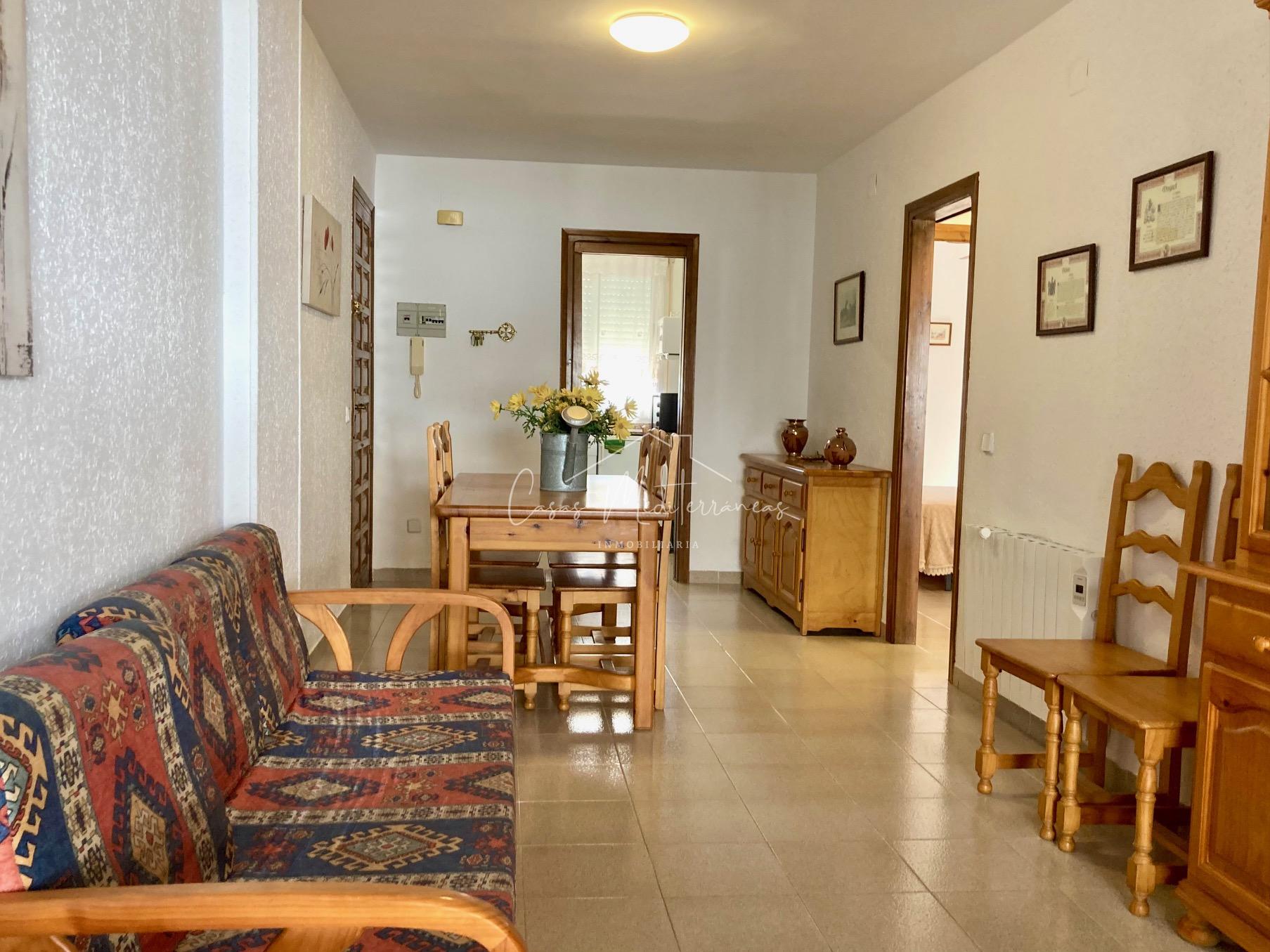 Situado en una primera planta con ascensor, consta de dos habitaciones dobles muy amplias con armarios empotrados y una de ellas con salida a terraza, amplio salón comedor de  20m2,  un baño completo, cocina independiente completamente equipada, gran terraza con toldos, radiadores eléctricos de bajo consumo en todas las habitaciones y parking exterior. Situado a 100 metros del mar, podrá disfrutar de la playa en cualquier epoca del año. de la playa.