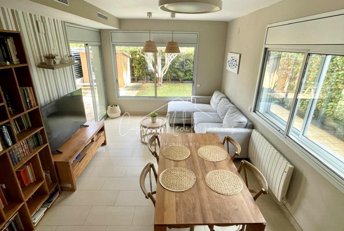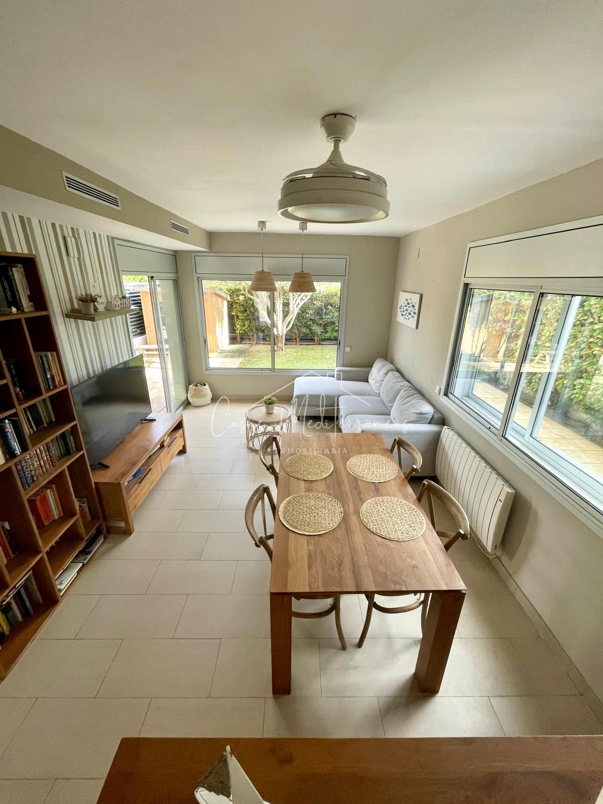 En planta baja encontramos un amplio salón-comedor  muy luminoso que nos permite un acceso directo al jardín, ideal para disfrutar de comidas al aire libre. Cocina abierta totalmente equipada y un aseo.