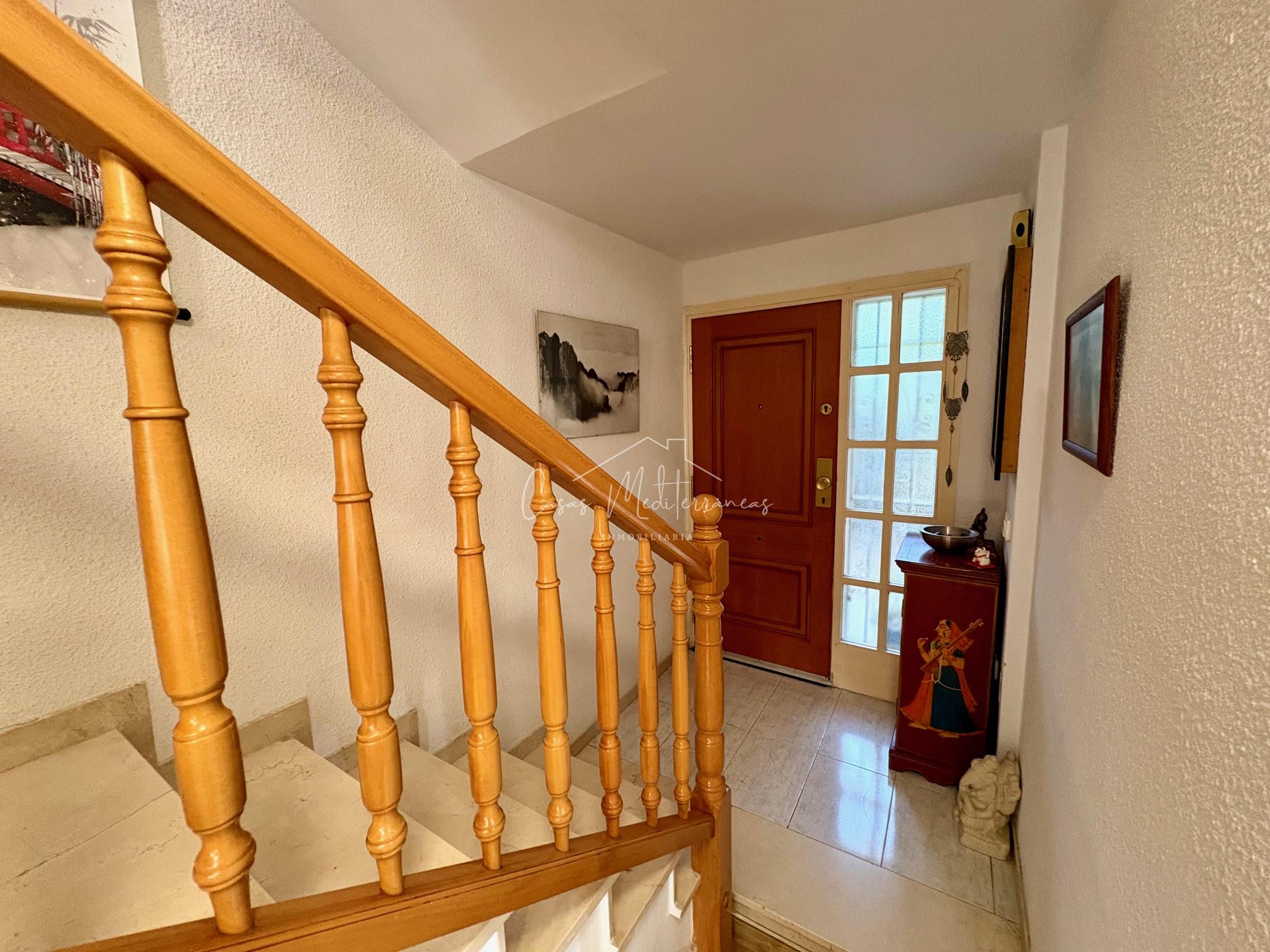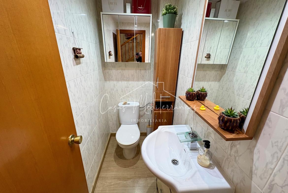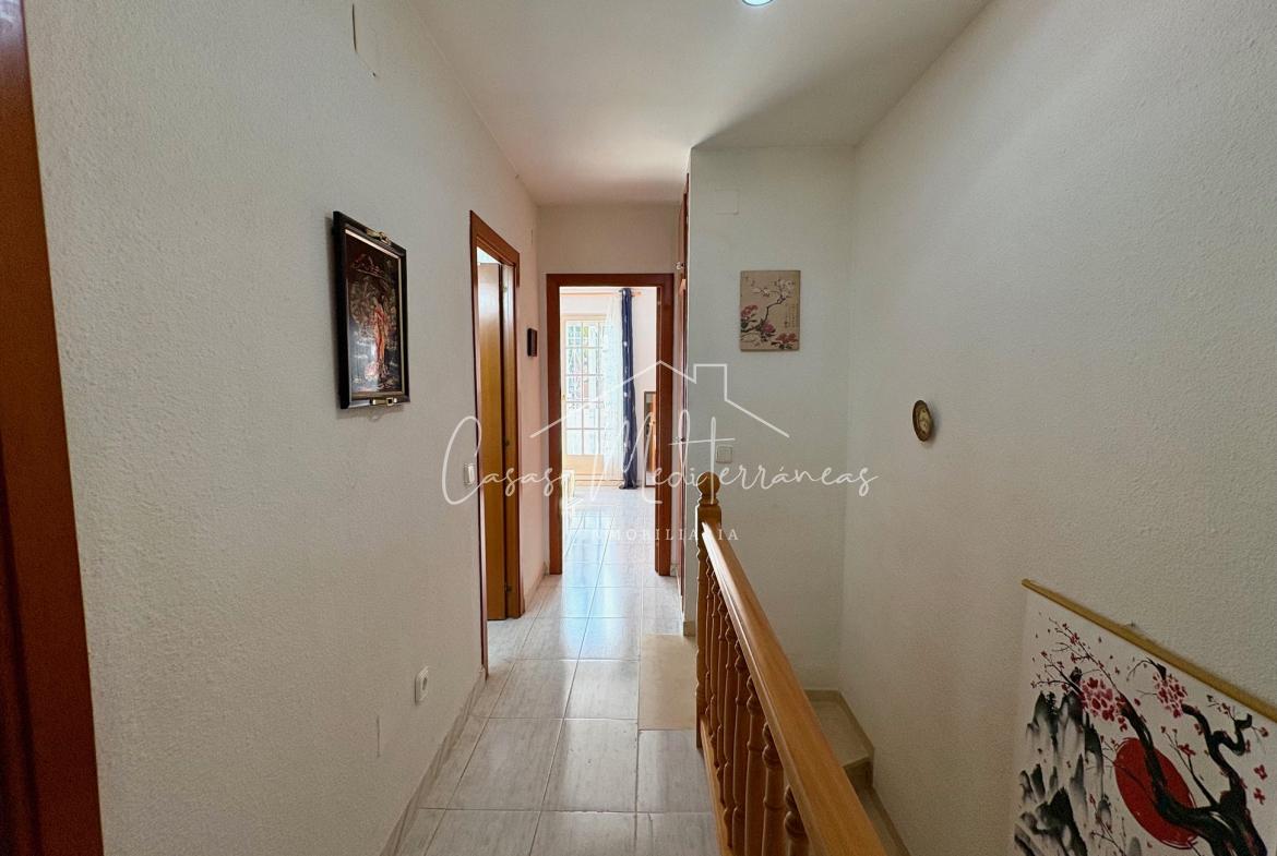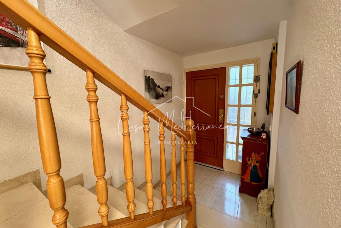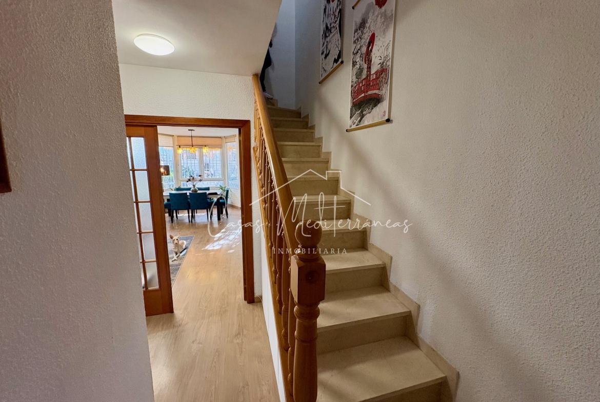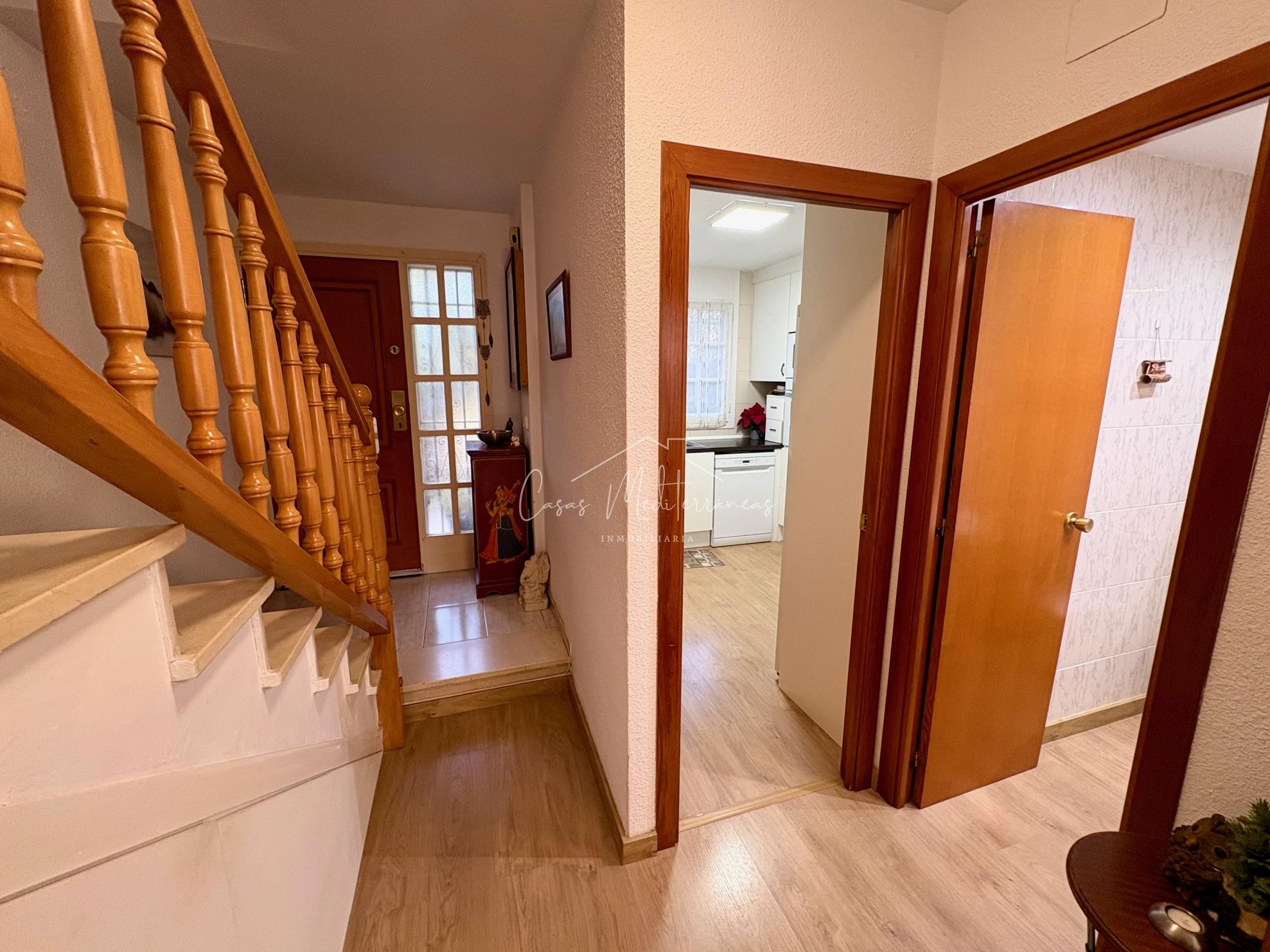 En planta baja encontramos un amplio salón comedor con salida a una gran e intima terraza con barbacoa, que da acceso a zona comunitaria, cocina independiente totalmente equipada, aseo. Todas las estancias muy luminosas. En la planta superior encontramos tres dormitorios con armarios empotrados y un baño completo con bañera. Desde el dormitorio principal, tenemos acceso a una terraza privada. La vivienda dispone de aire acondicionado y calefacción en el salón y habitaciones. Dispone de plaza de parking subterráneo con acceso mediante rampa, con la posibilidad de alquilar una segunda.