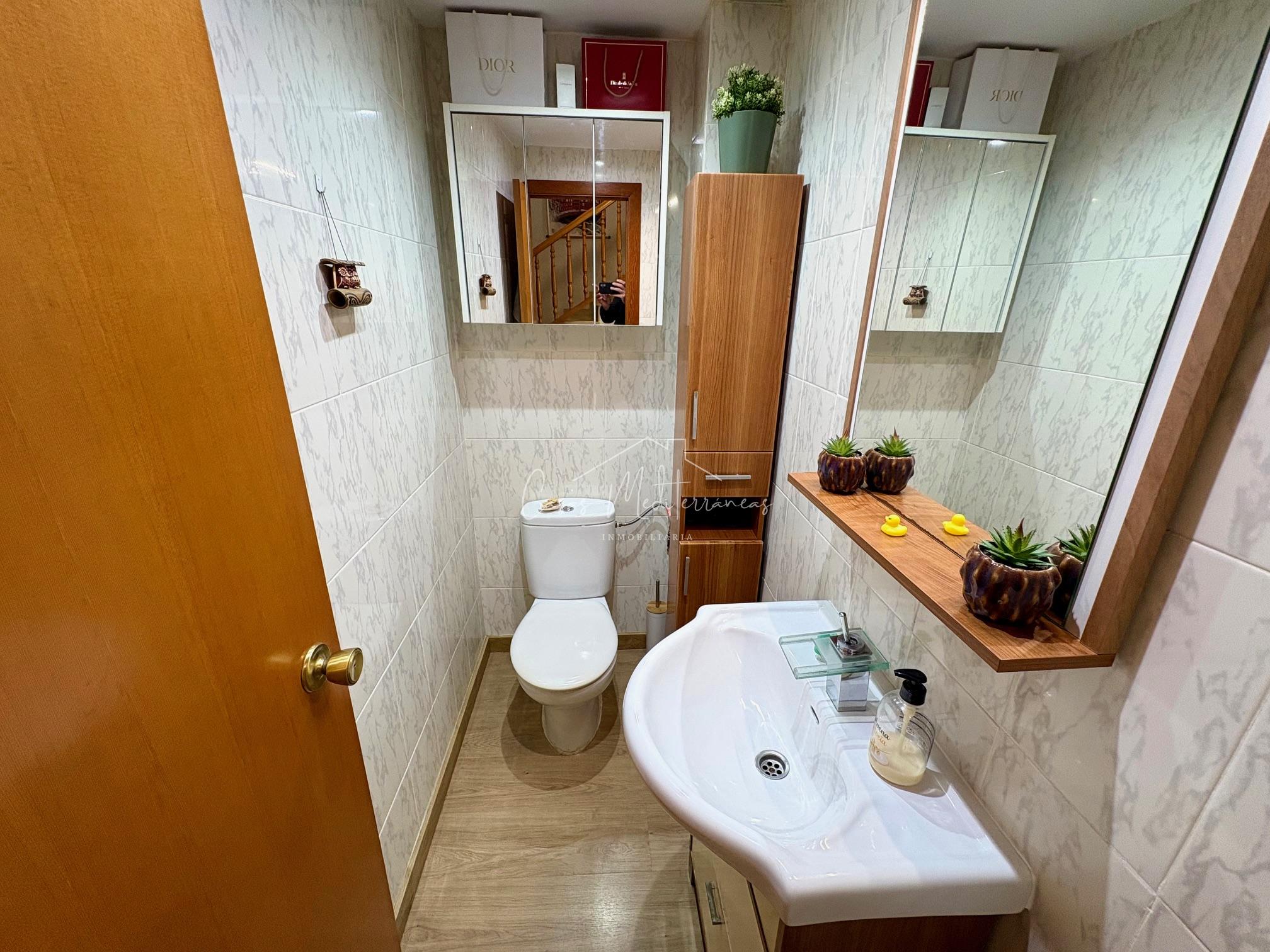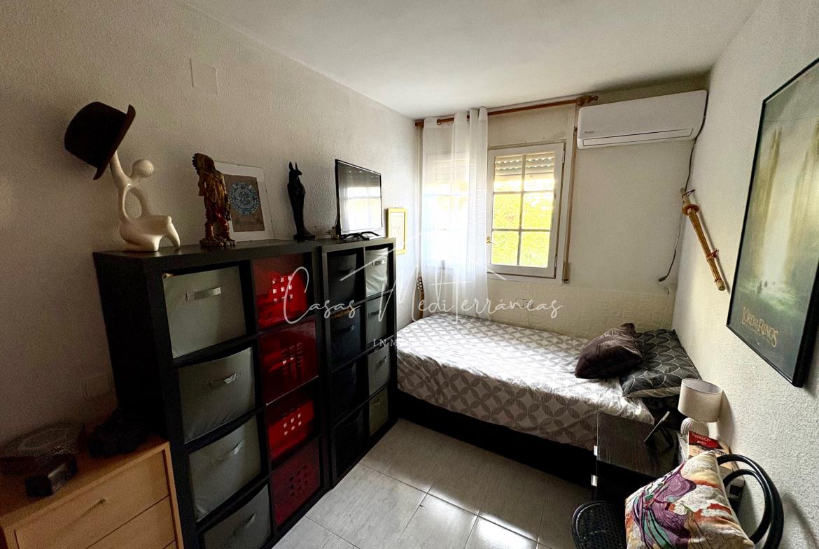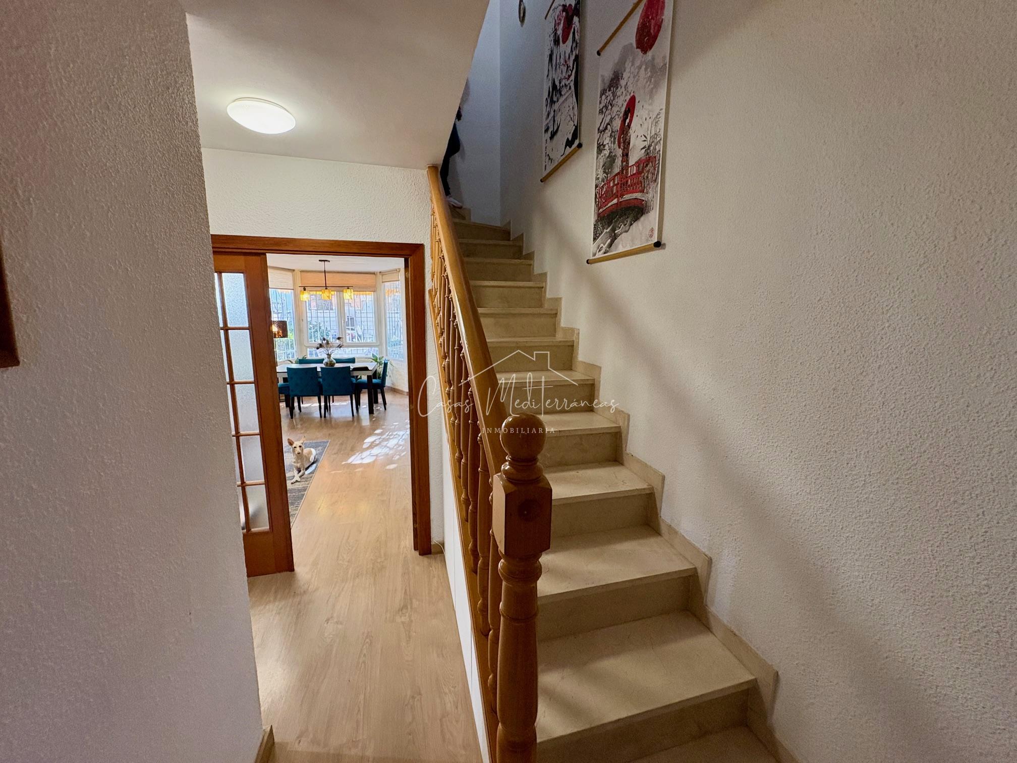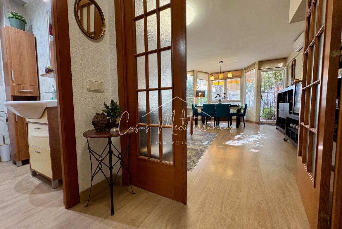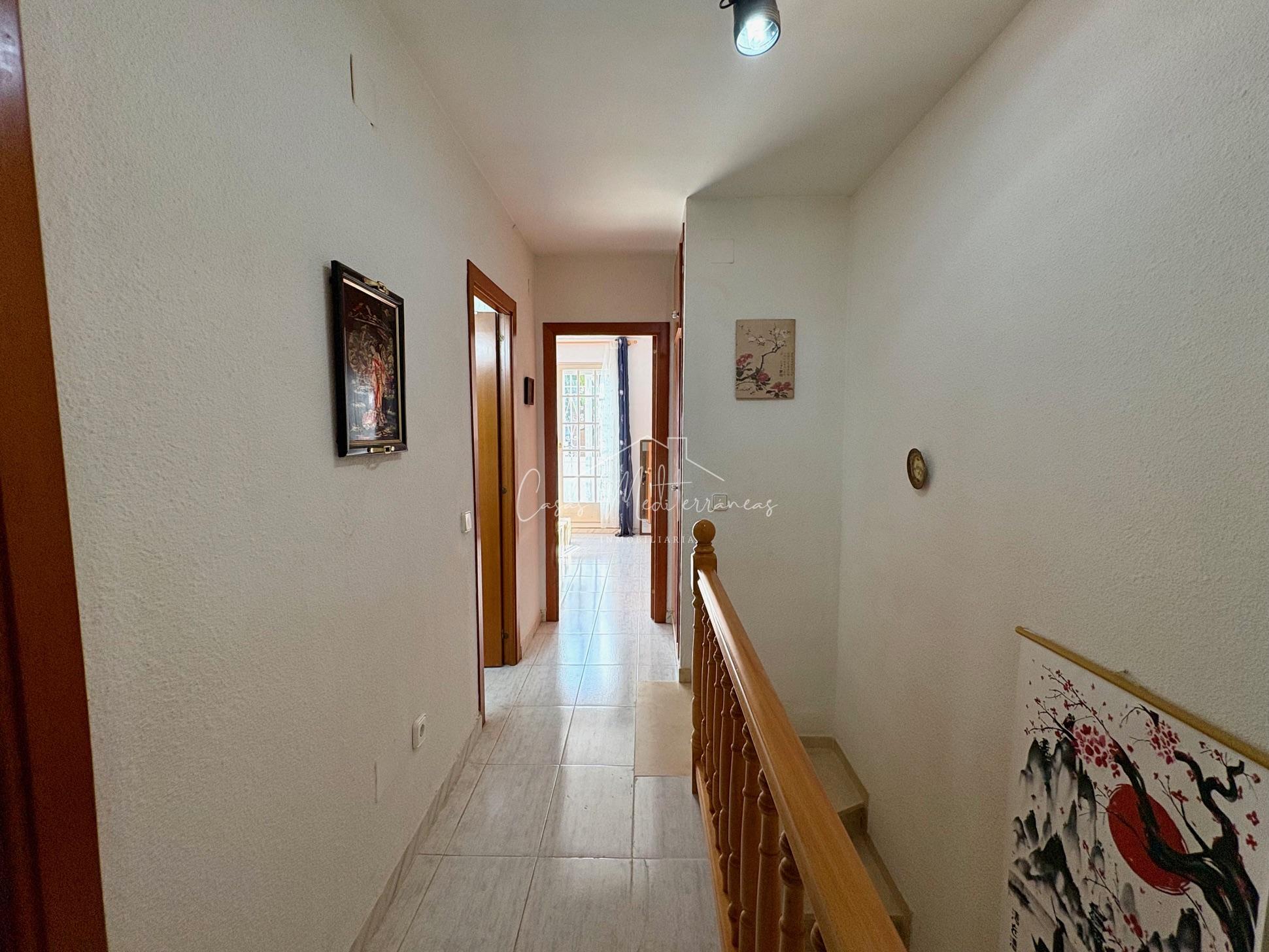 En planta baja encontramos un amplio salón comedor con salida a una gran e intima terraza con barbacoa, que da acceso a zona comunitaria, cocina independiente totalmente equipada, aseo. Todas las estancias muy luminosas. En la planta superior encontramos tres dormitorios con armarios empotrados y un baño completo con bañera. Desde el dormitorio principal, tenemos acceso a una terraza privada. La vivienda dispone de aire acondicionado y calefacción en el salón y habitaciones. Dispone de plaza de parking subterráneo con acceso mediante rampa, con la posibilidad de alquilar una segunda.