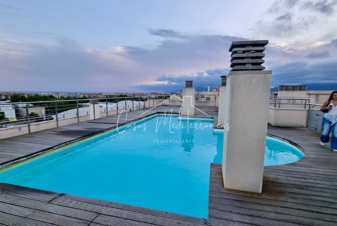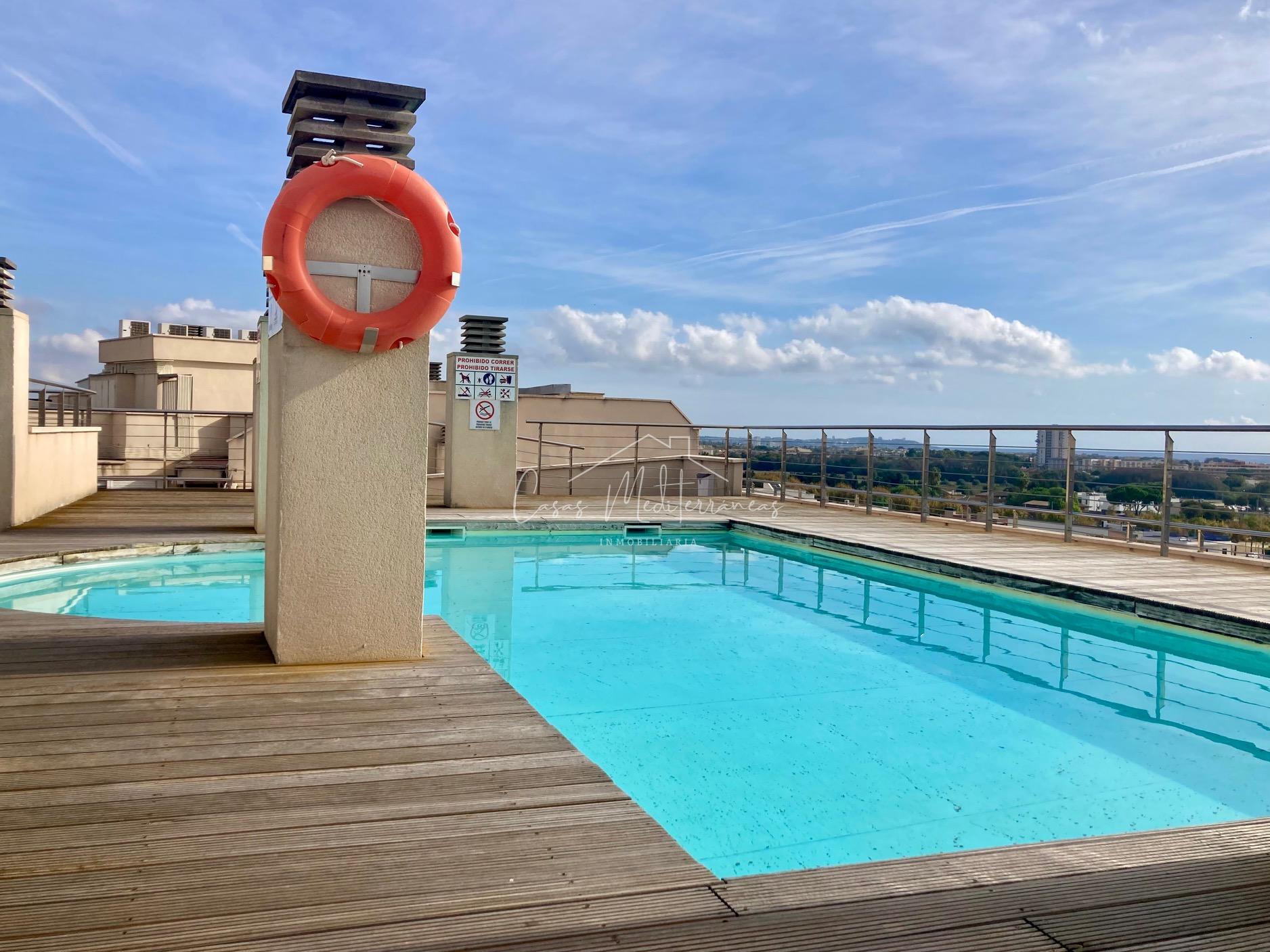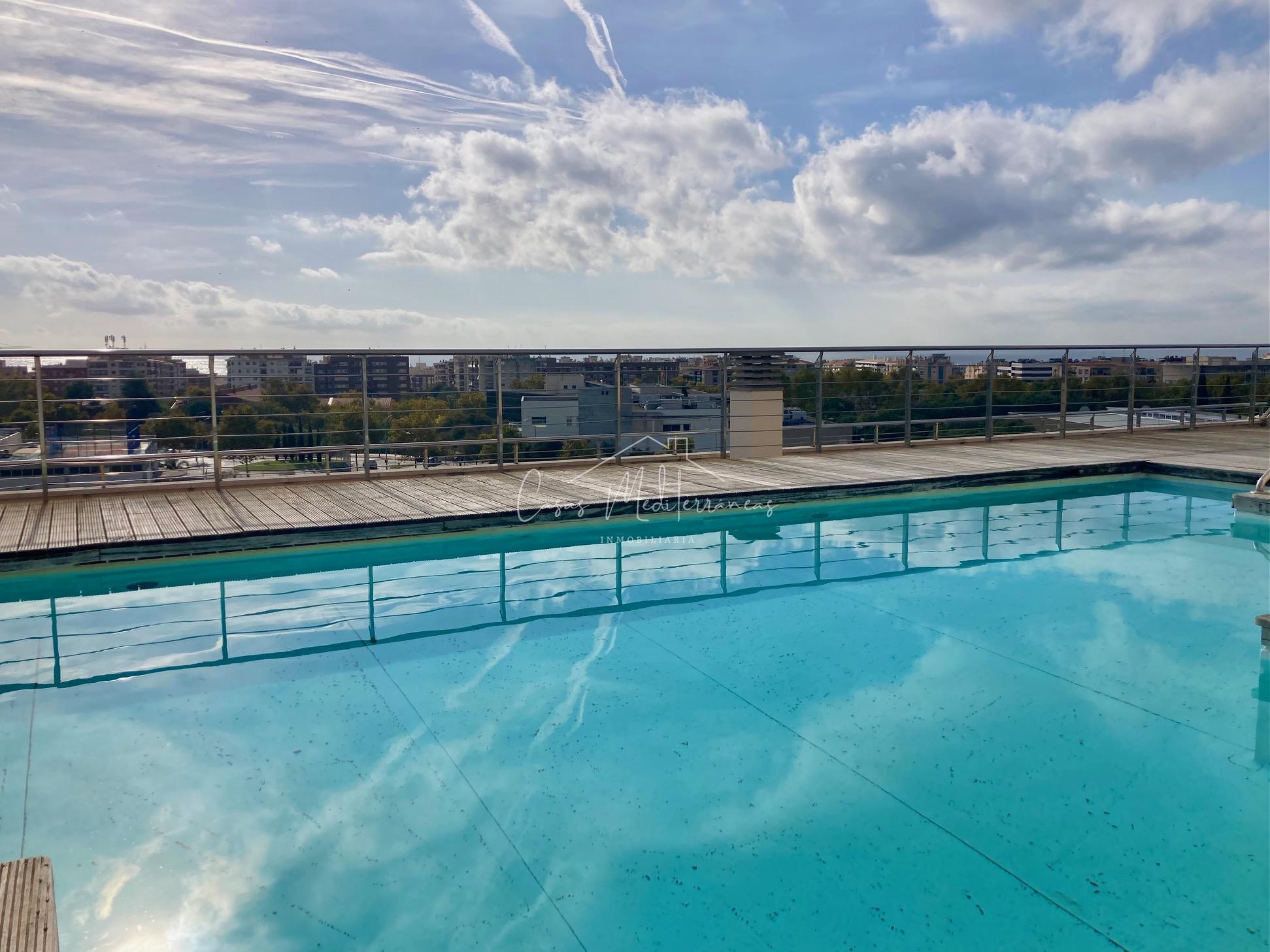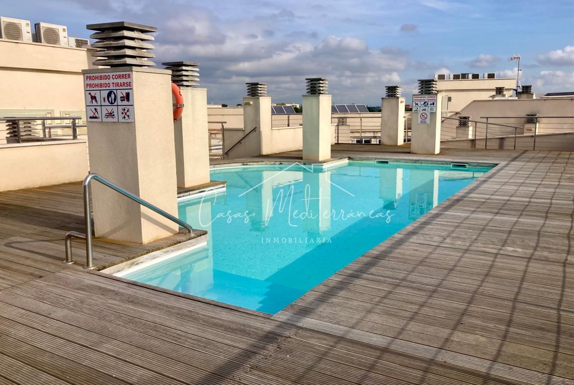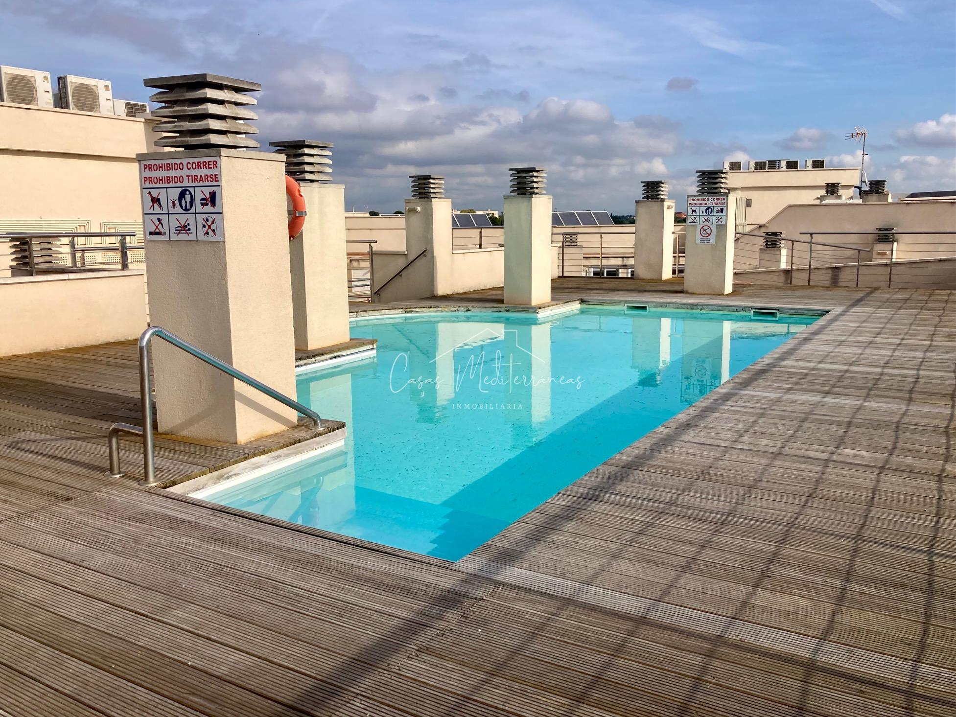 Consta de 2 habitaciones dobles, dos baños completos, uno en habitación suite, un amplio comedor con salida a terraza, cocina independiente con salida a patio interior y plaza de parking. Cuenta con aire acondicionado con bomba de calor, cerramientos de aluminio, ascensor y una agradable piscina en la azotea del edificio donde disfrutar de un agradable baño, y una fantásticas vistas.